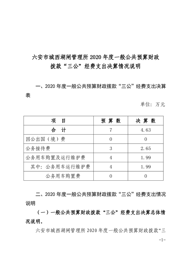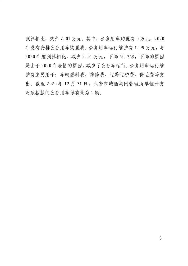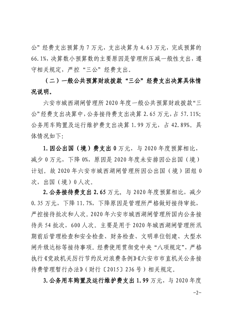 六安市城西湖闸管理所2020年“三公”经费决算公开
