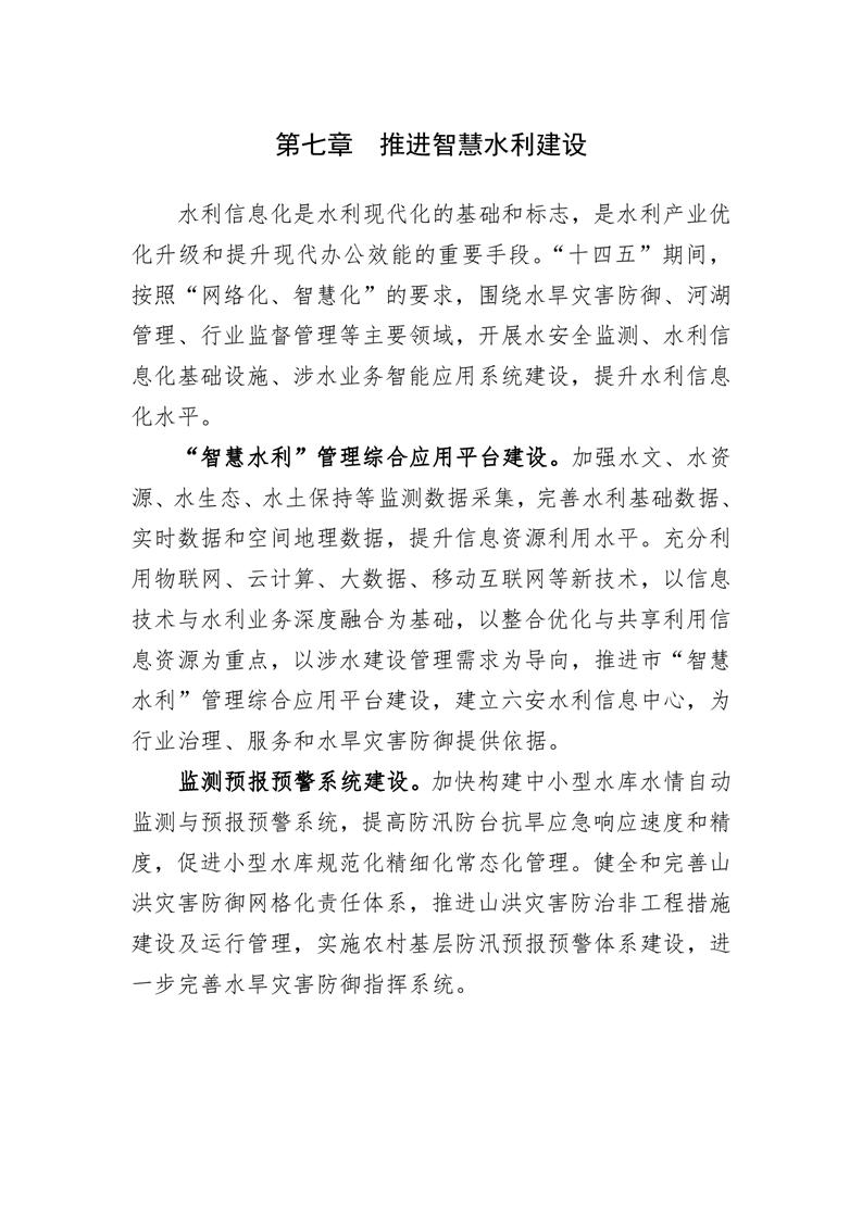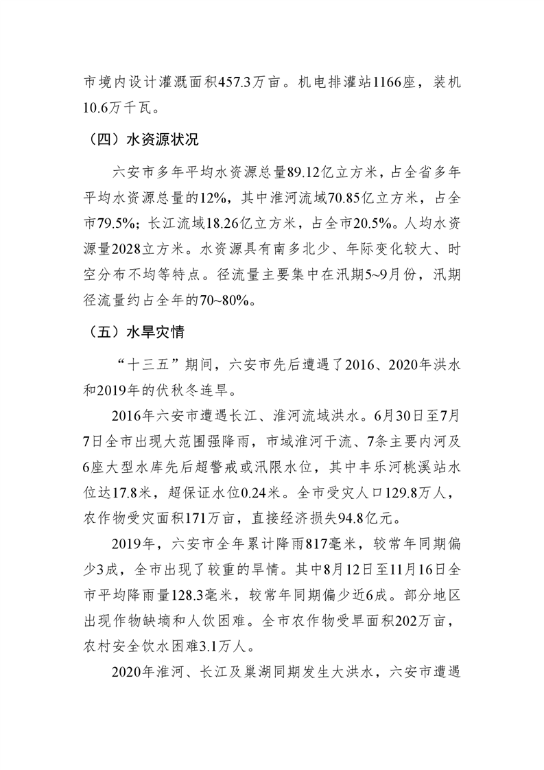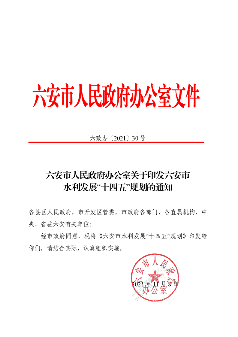 六安市人民政府办公室关于印发六安市水利发展“十四五”规划的通知