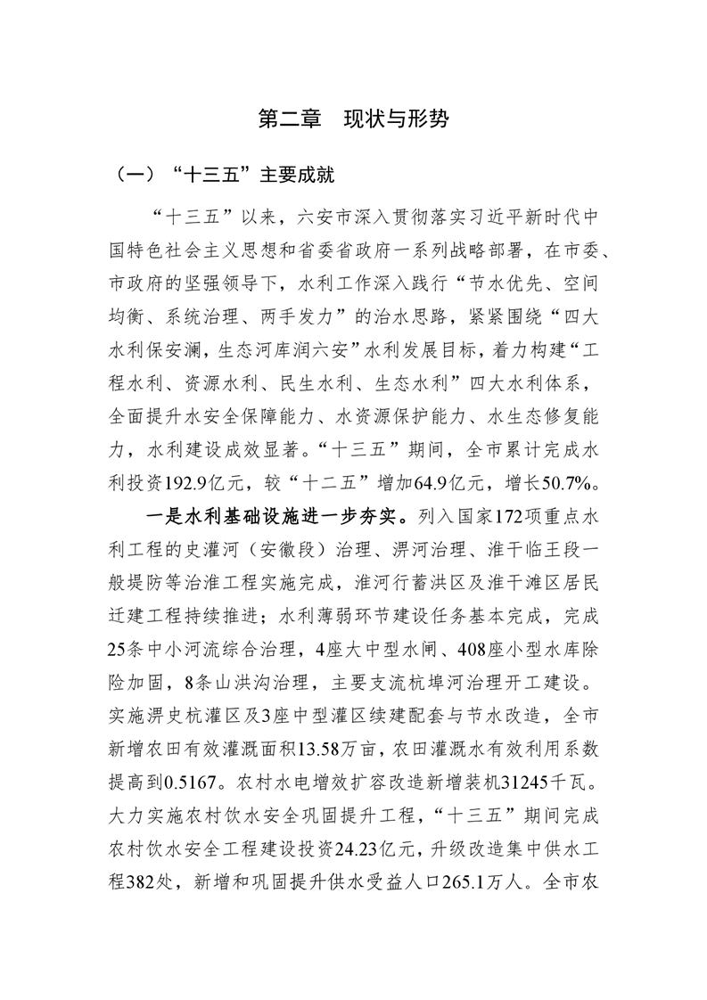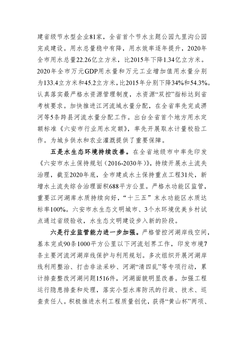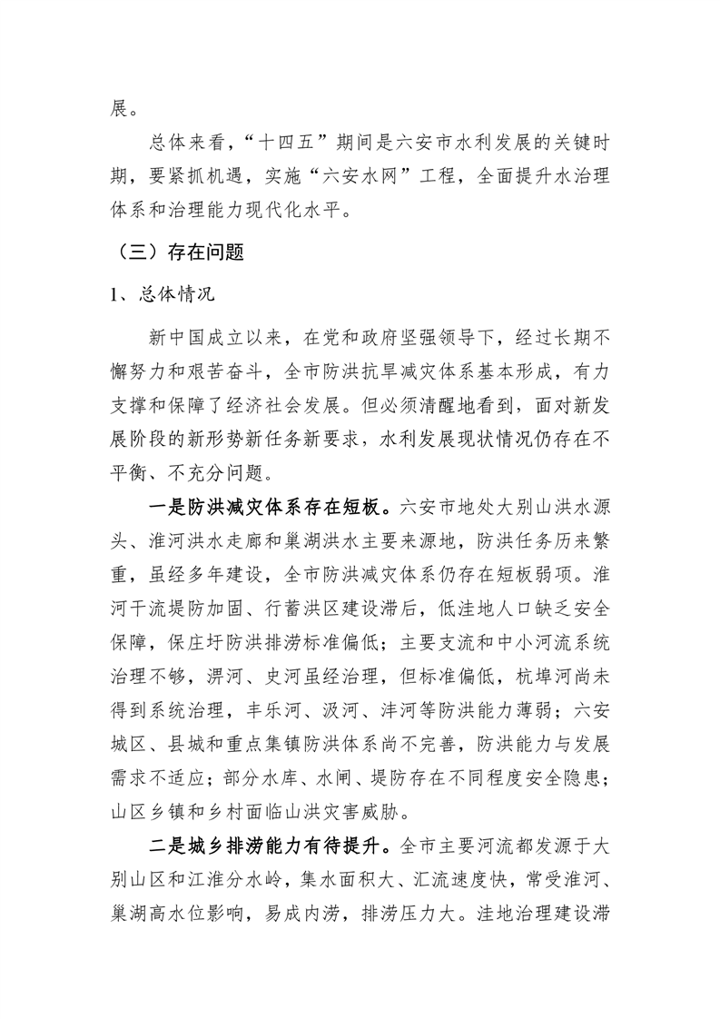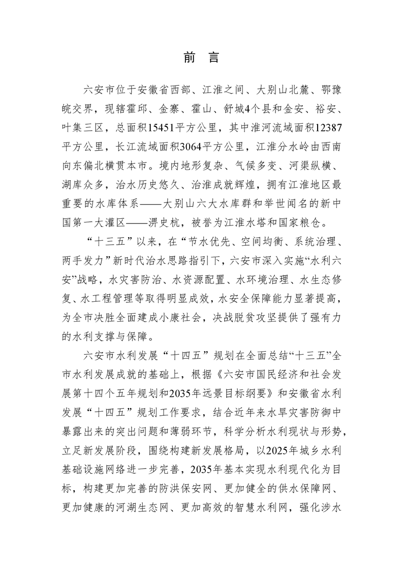 六安市人民政府办公室关于印发六安市水利发展“十四五”规划的通知