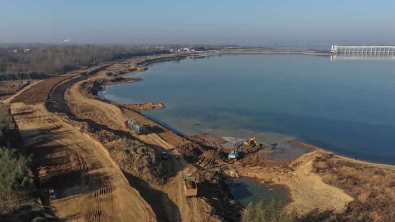 正在施工中的淠河防洪治理工程裕安区城南镇桃湾村段