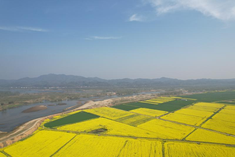 图二 裕安区青山乡兴隆村东淠河岸边,油菜花绽放。