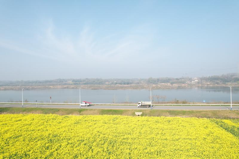 图一 裕安区韩摆渡镇淠河岸边,油菜花灿烂。