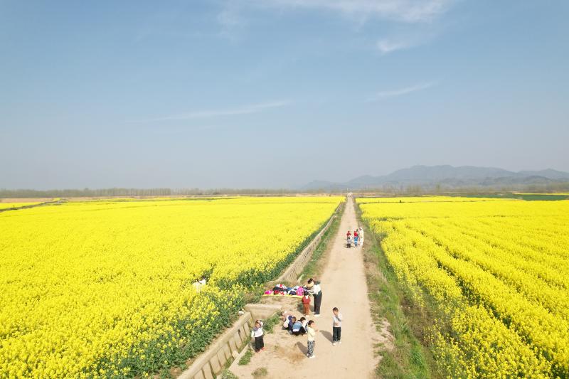 图三 裕安区青山乡兴隆村东淠河岸边,青山乡幼儿园的孩子们在观赏油菜花、亲近自然。