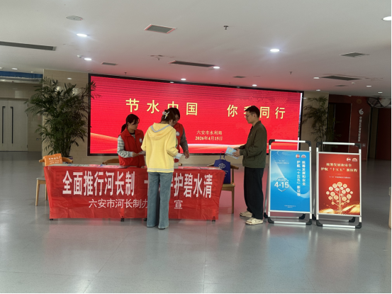 为深入践行节水优先方针,增强机关单位干部职工及办事群众节水意识,充分发挥机关单位在节水工作中的示范引领作用,4月15日,六安市水利局在市文化馆开展节水宣传进机关活动。