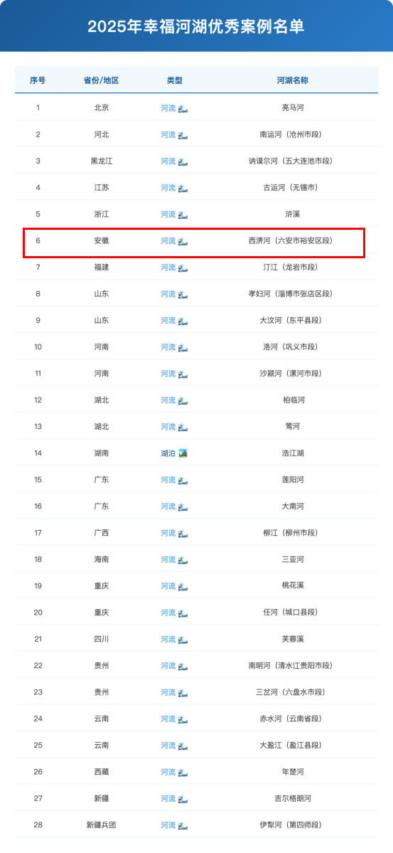 我市西淠河入选2025年全国幸福河湖优秀案例