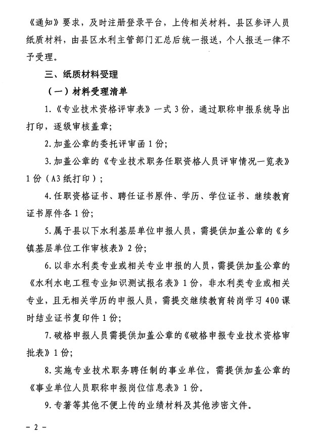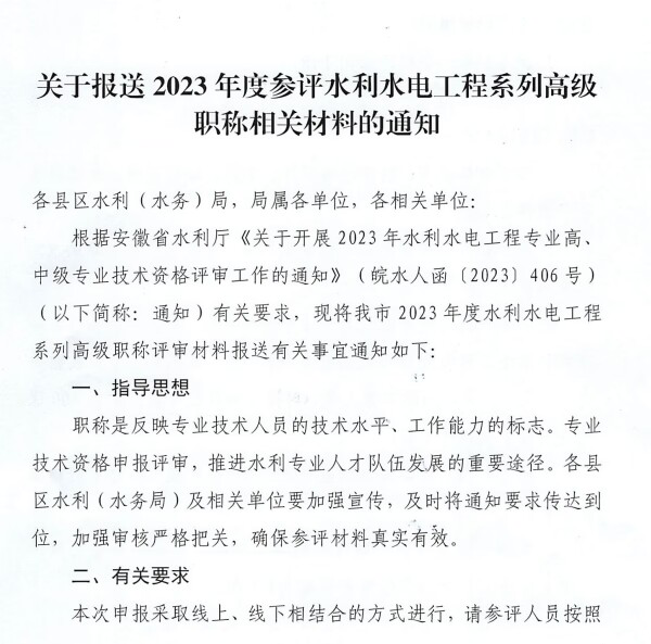 关于报送2023年度参评水利水电工程系列高级职称相关材料的通知